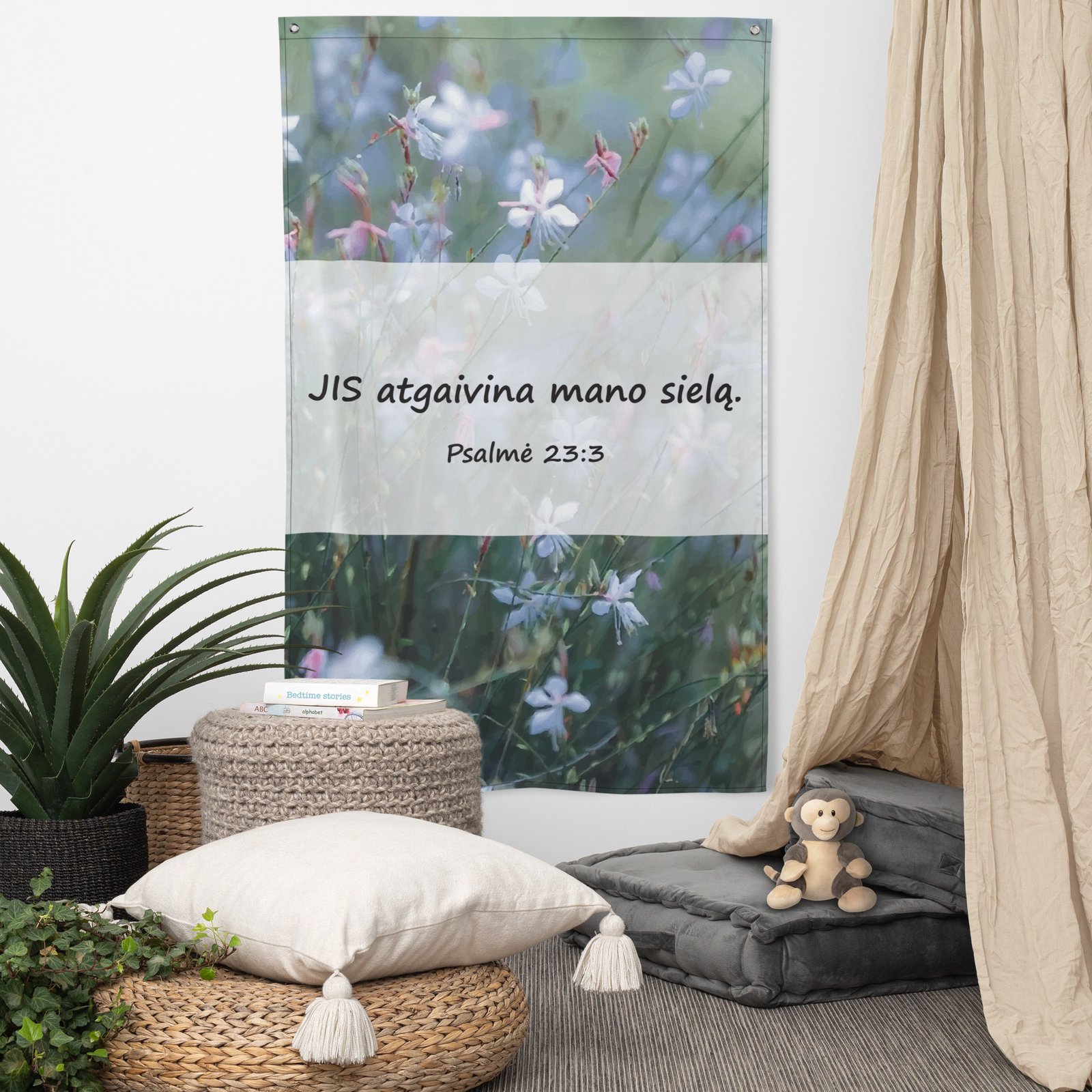 Stilinga sienos vėliava jaukiam namų akcentui.