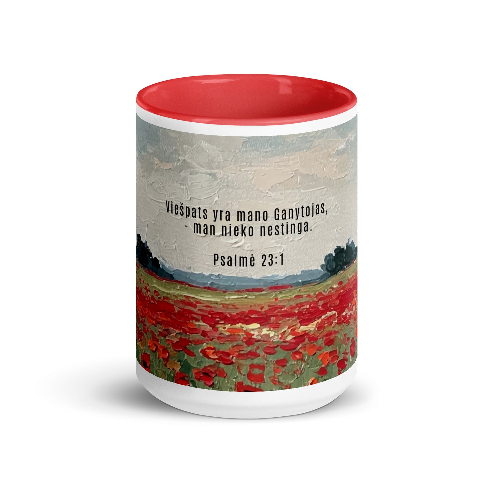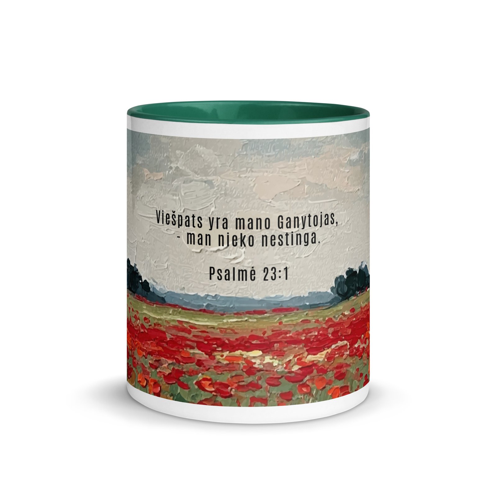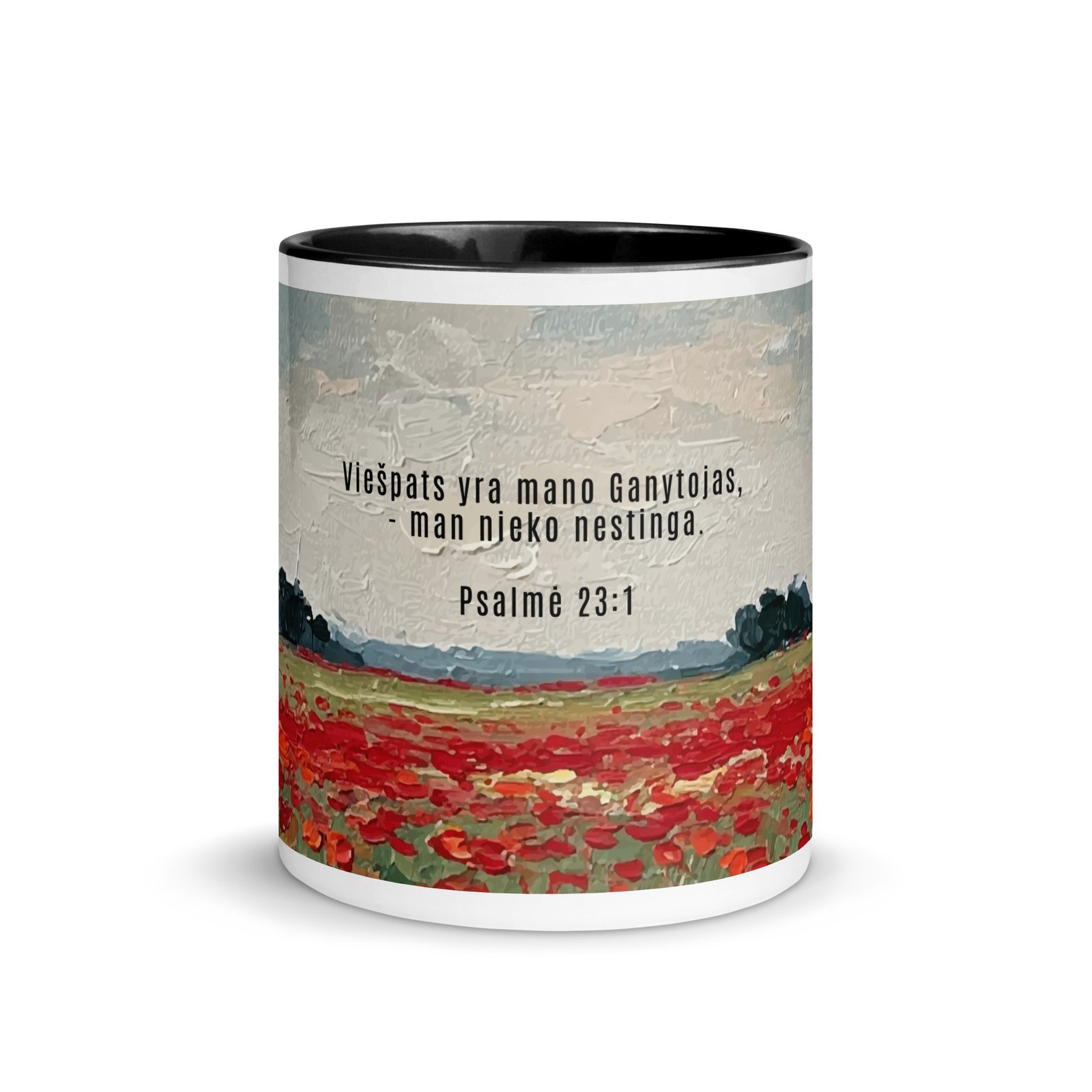 Biblijos citata · Keraminis puodelis su spalvotu vidumi