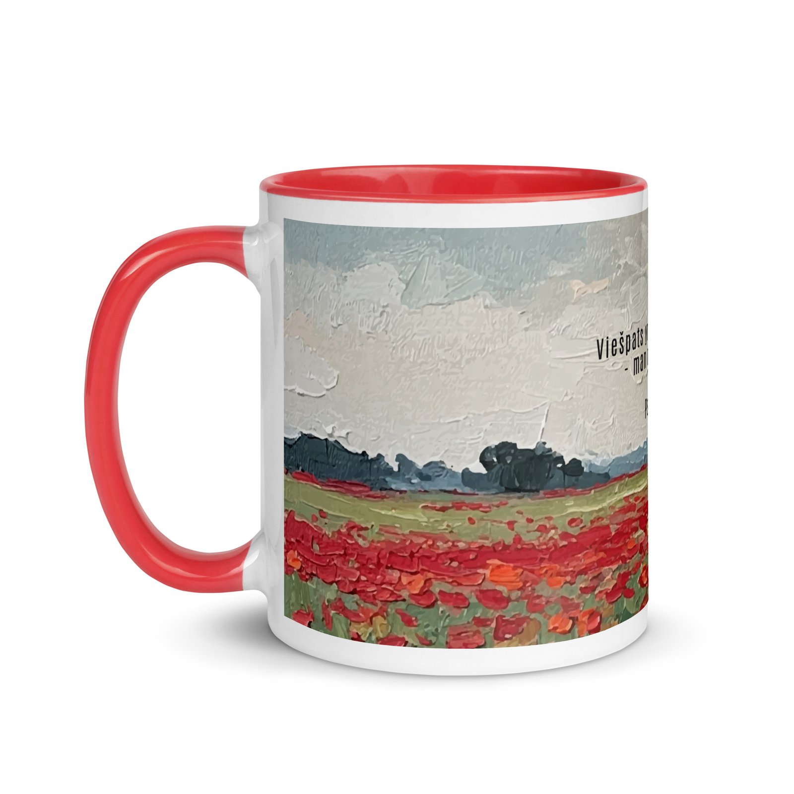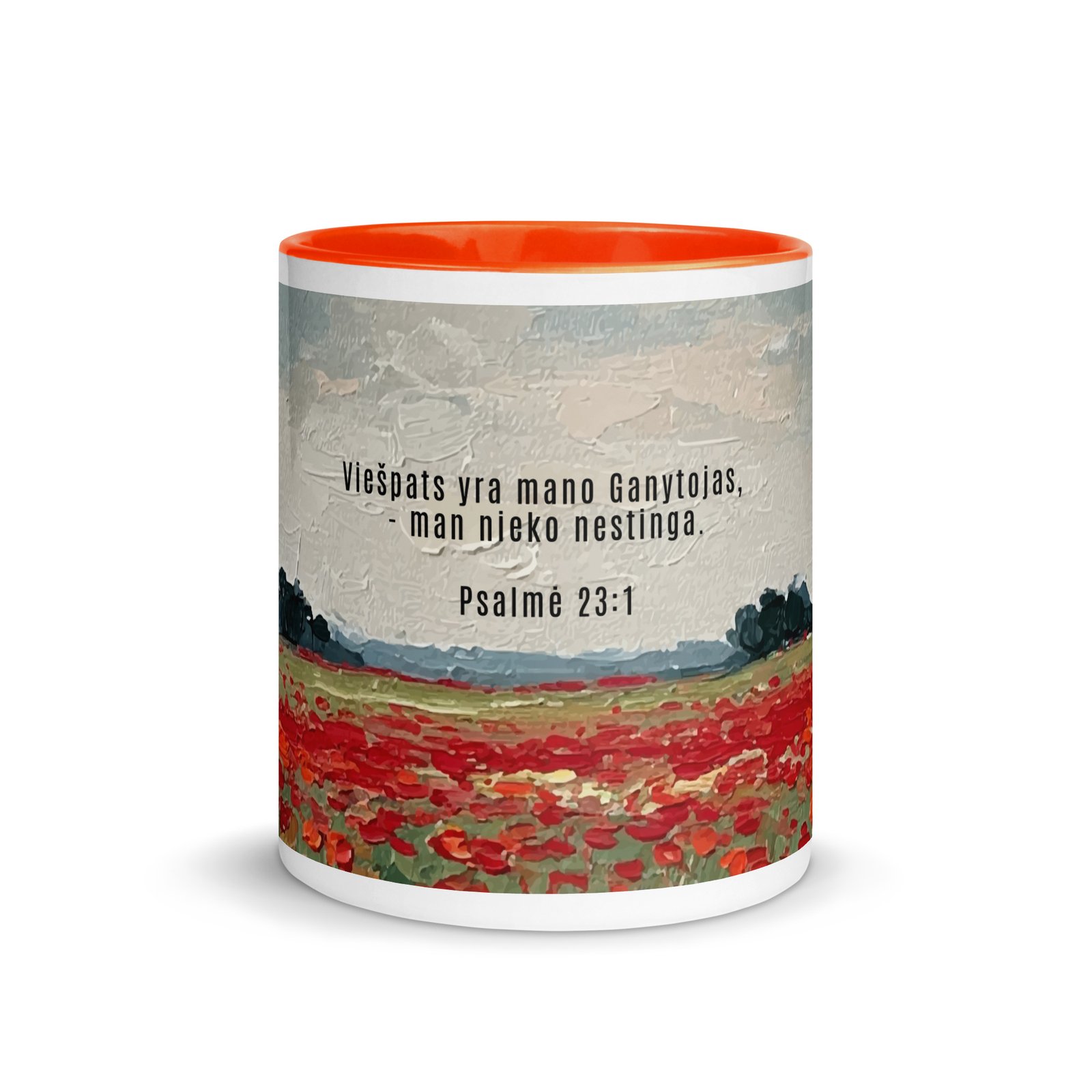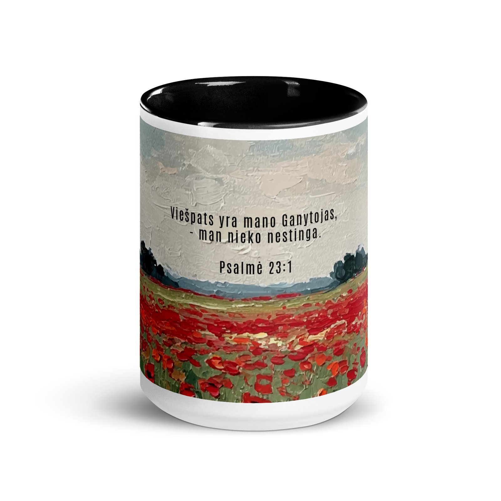 Biblijos citata · Keraminis puodelis su spalvotu vidumi