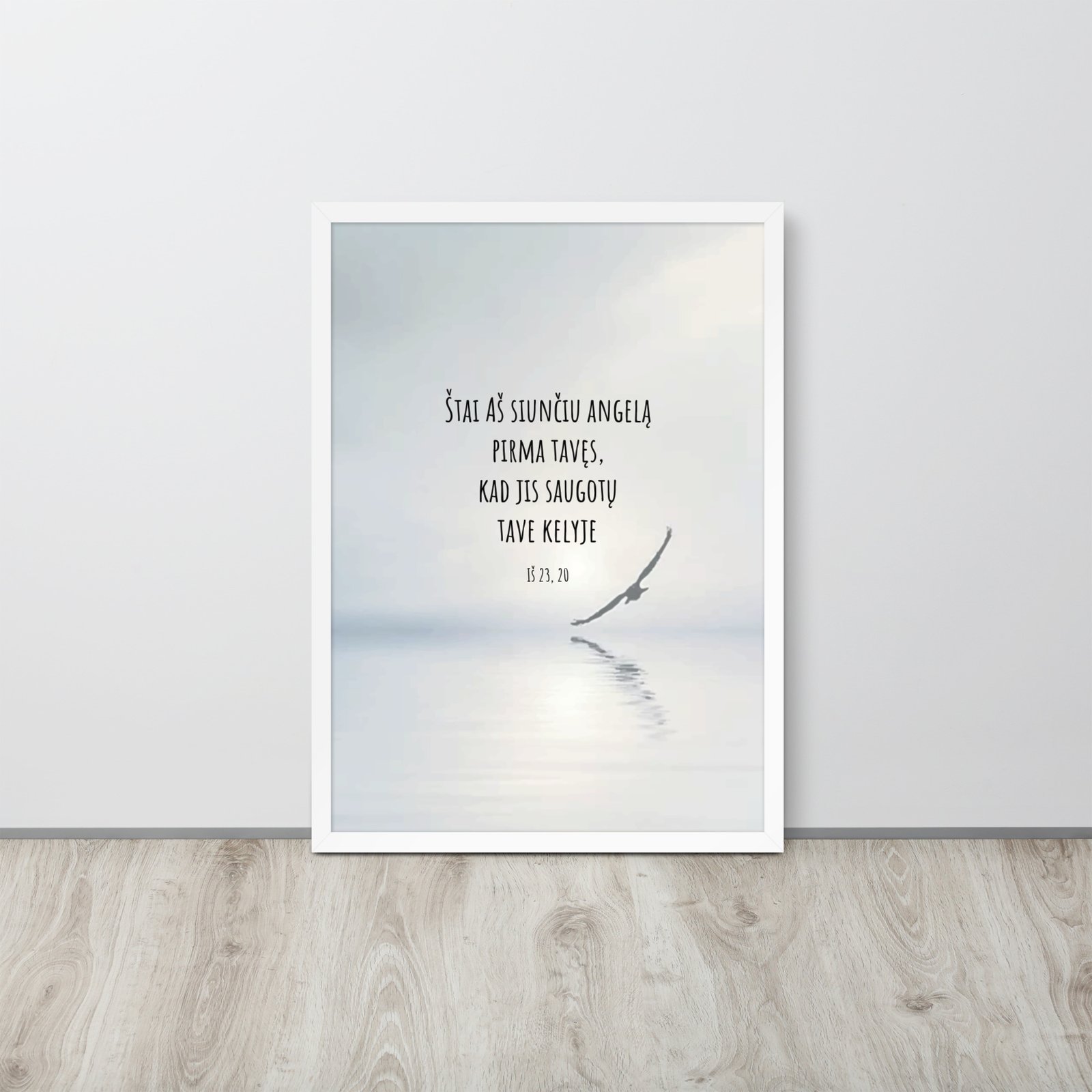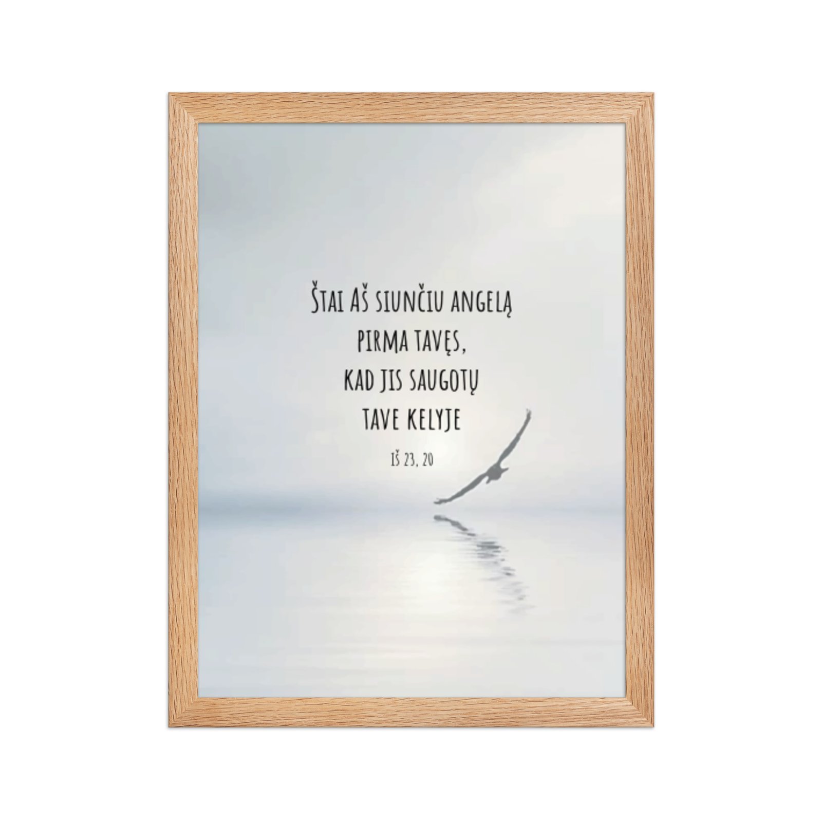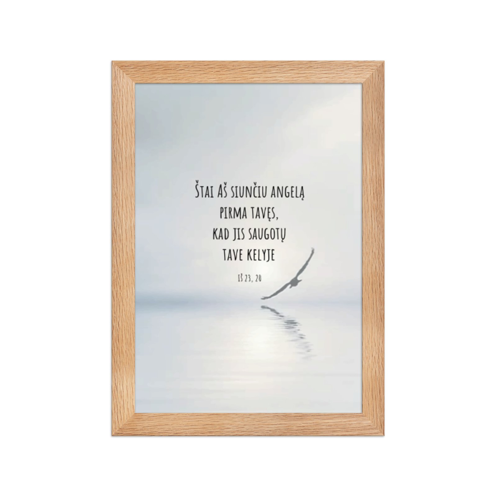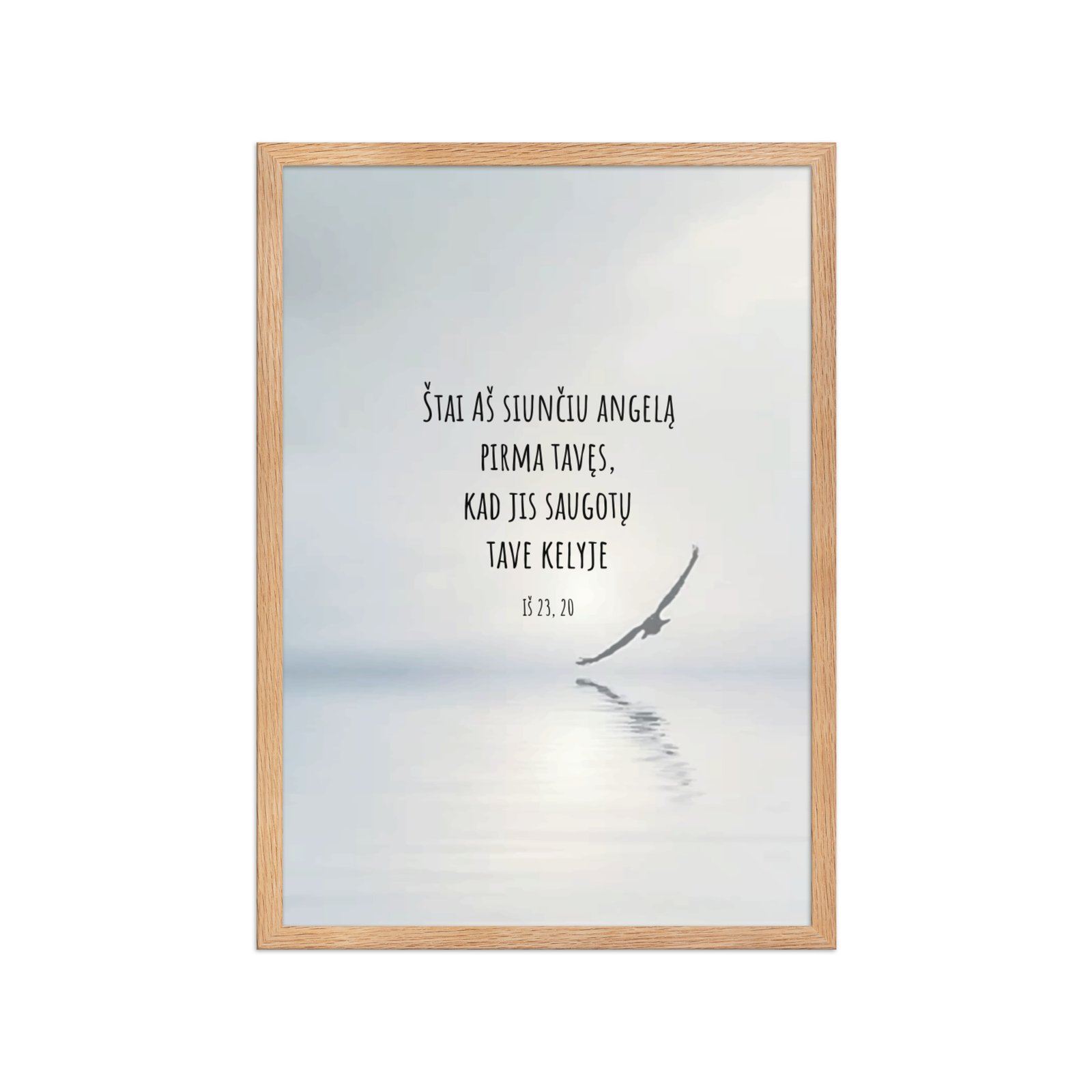 Aukštos kokybės spauda ant storo matinio popieriaus ir natūralaus medžio rėmai formuoja švarią, laikui nepavaldžią estetiką.
