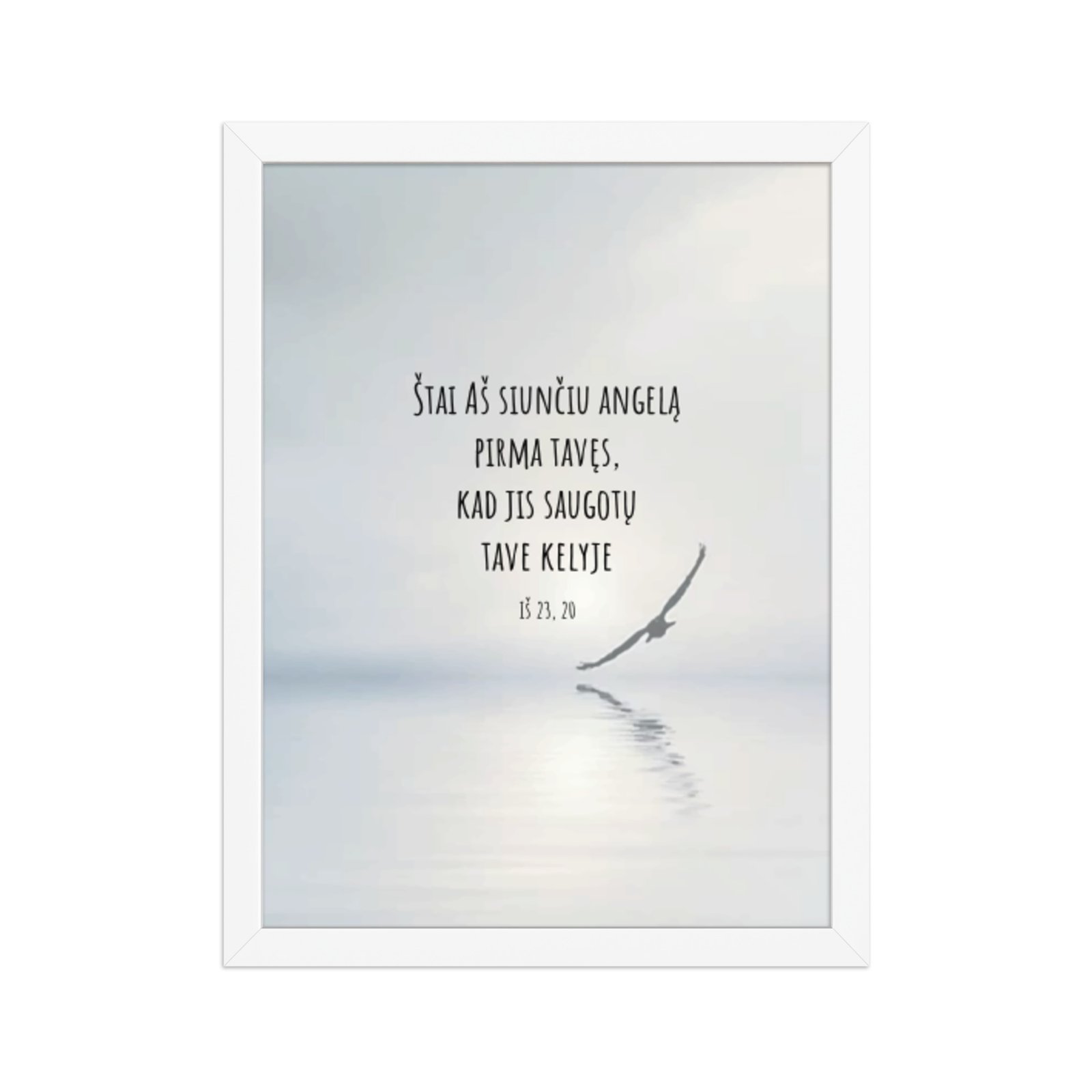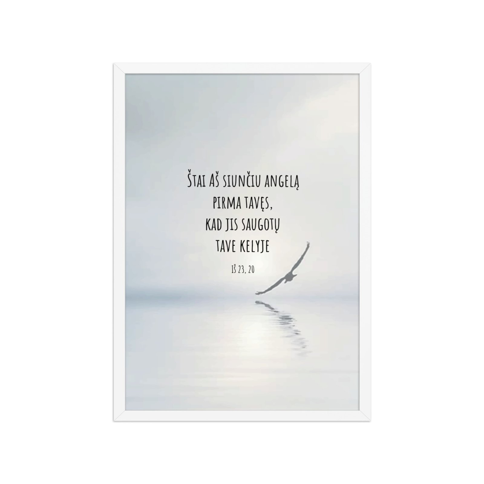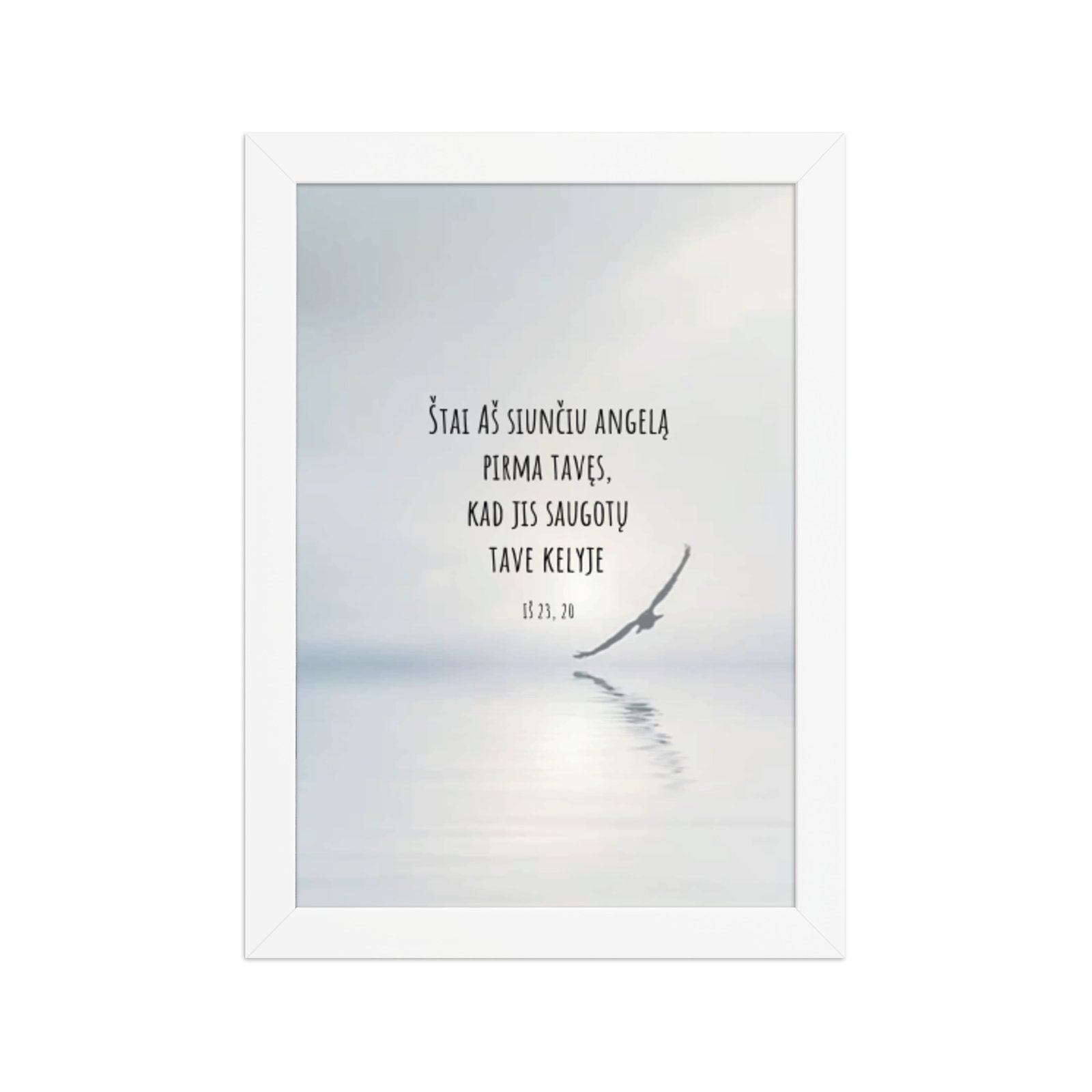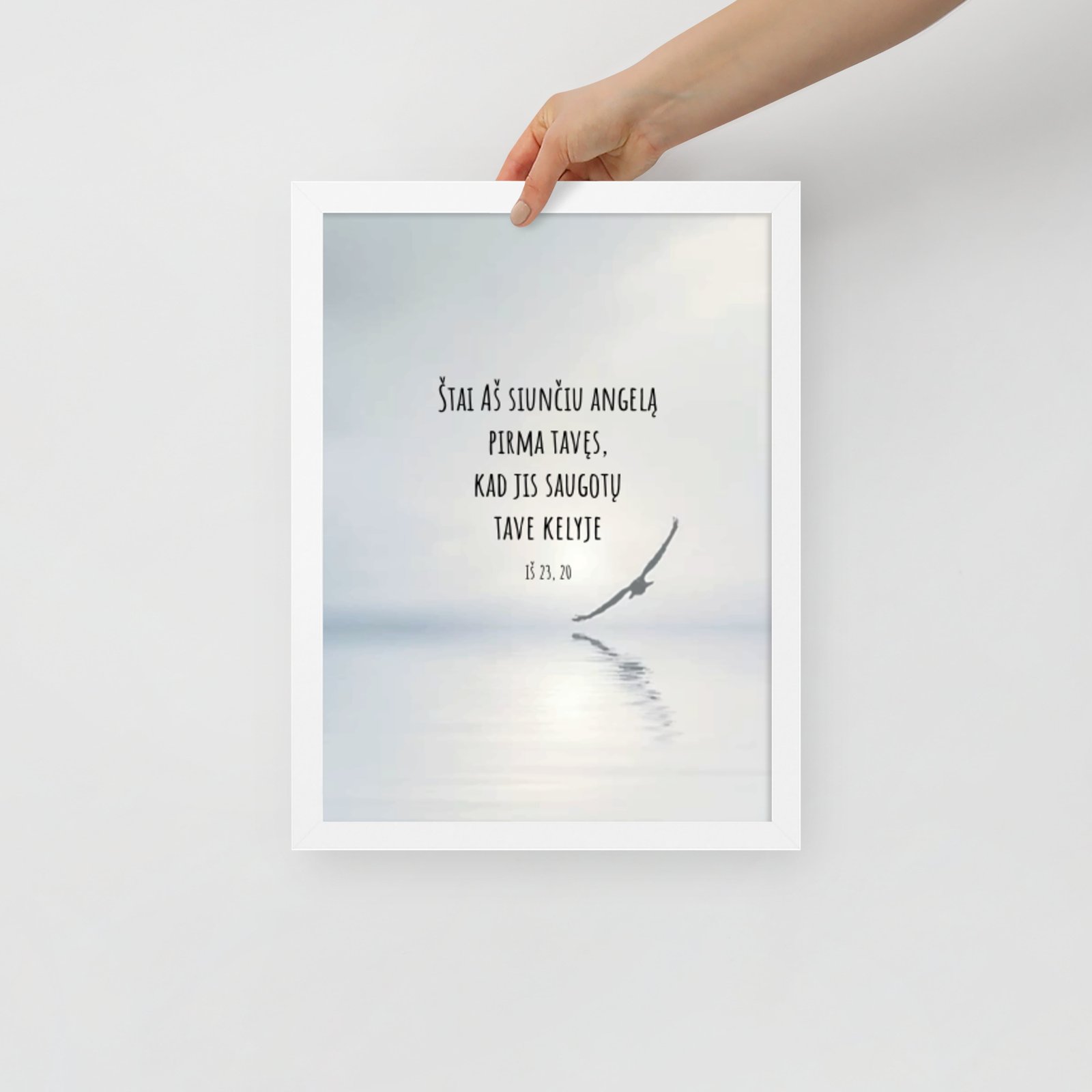 Aukštos kokybės spauda ant storo matinio popieriaus ir natūralaus medžio rėmai formuoja švarią, laikui nepavaldžią estetiką.