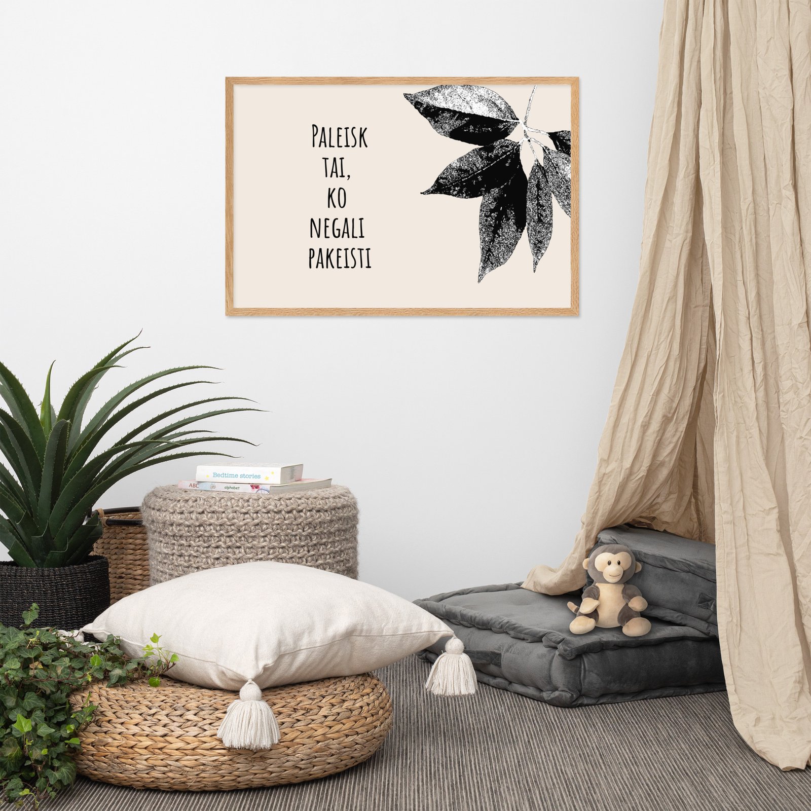 Aukštos kokybės spauda ant storo matinio popieriaus ir natūralaus medžio rėmai formuoja švarią, laikui nepavaldžią estetiką.