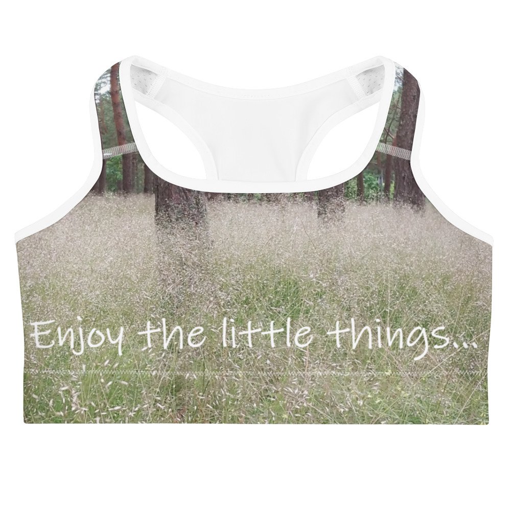 This gorgeous sports bra is made from moisture-wicking material that stays dry during low and medium intensity workouts. The bra has support material in the shoulder straps, double layer front, and a wide elastic band to ensure constant support.
